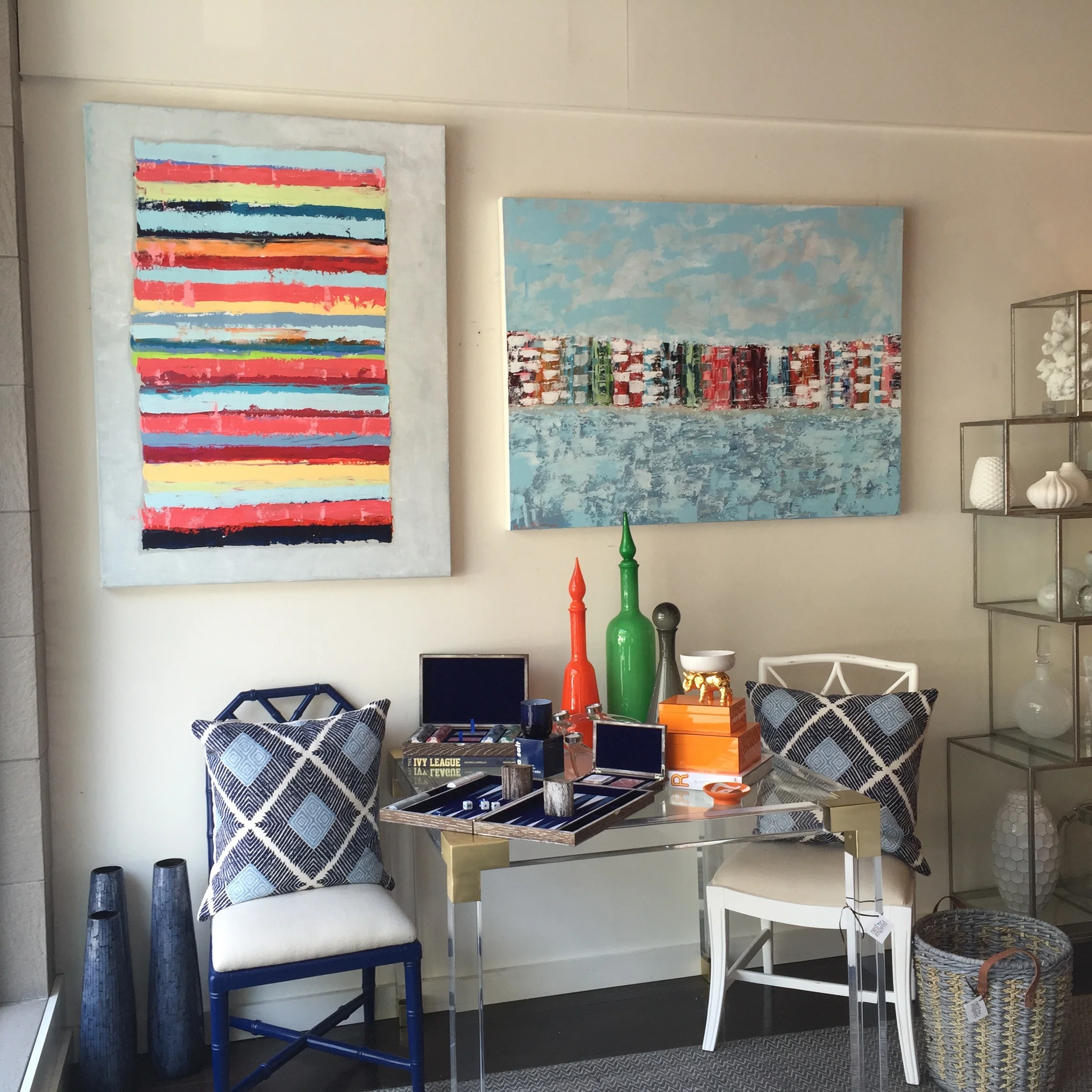 Kim started her Beach Towel collection a few years ago. These paintings have great color and movement and capture both the ease and energy of summer. Two new ones that will be at Nest.